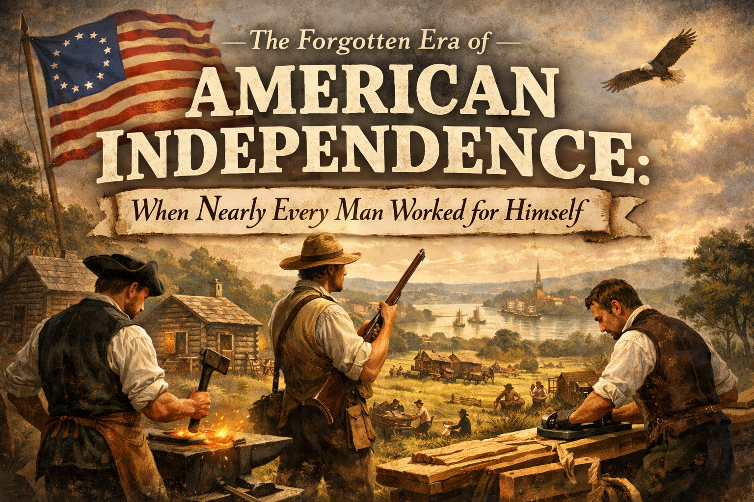 Walk through any modern American city today and you’ll see a landscape shaped by employment. Glass office towers filled with salaried workers, retail chains with hourly employees punching clocks, factories operating on shift schedules. We take for granted that most people work for someone else—that employment is the natural order of economic life. But travel back two centuries to the early 1800s, and you would find a radically different America. An America where the concept of “going to work” meant walking to your own workshop, field, or storefront. An America where the vast majority of men were not employees, but proprietors of their own livelihoods.